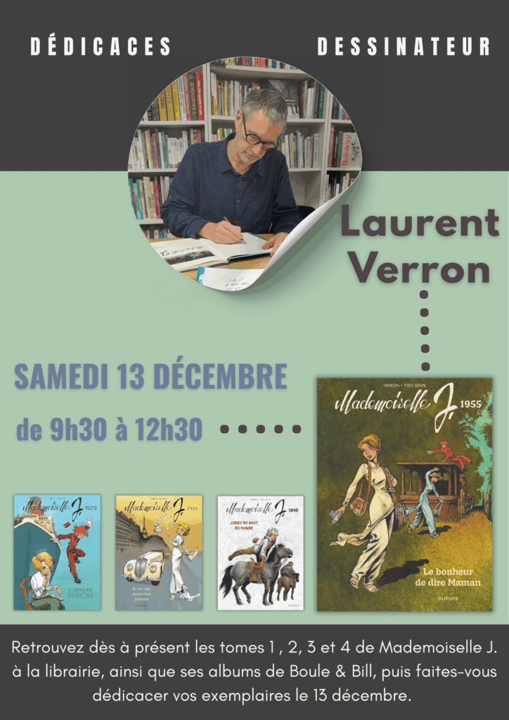 Vous vous souvenez ? On avait accueilli Laurent Verron l’année dernière pour une séance de dédicaces de ses BDs ados/adultes « Mademoiselle J. », mais aussi pour les Boule & Bill qu’il a dessinés à la suite de Roba.