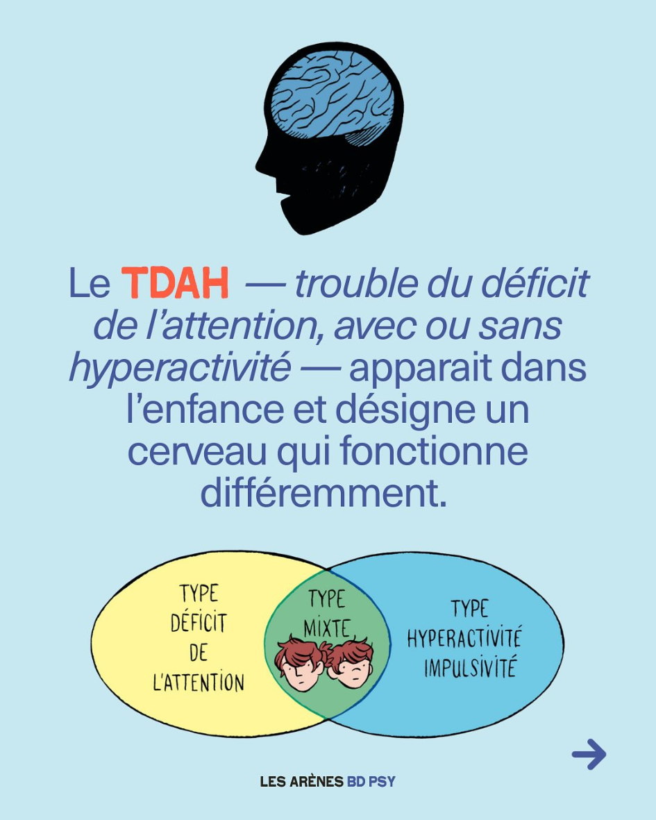 📚 Si vous n’avez pas encore découvert la collection des éditions Les arenes, n’attendez plus ! Le petit dernier des « BD psy » porte sur le TDAH 📚